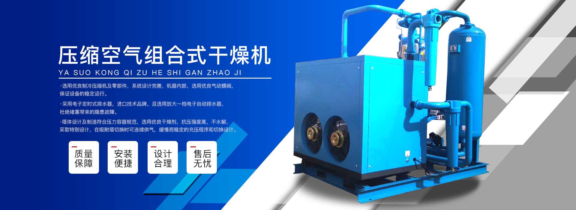 本公司系中國科學院、重鋼院、機電技術(shù)設(shè)計院、氣動技術(shù)研究所等相關(guān)專家合作的具有雄厚技術(shù)力量的高科技實體,是一個專業(yè)從事各種氣體干燥凈化及分離純化設(shè)備研究開發(fā)及推廣應用的高科技公司。公司積多年對壓縮空氣凈化設(shè)備的生產(chǎn)技術(shù)和銷售經(jīng)驗,并在消化吸收國外先進技術(shù)的基礎(chǔ)上,結(jié)合國內(nèi)實際工況特點,研制出適合國內(nèi)外廣大用戶的“滬盛”牌HSD系列壓縮空氣冷凍式干燥機、吸附式干燥機、后部冷卻器、預冷機組、工業(yè)用冷水機組和HF系列壓縮空氣高效精密過濾器(國產(chǎn)濾殼,美國漢克森HANKISON濾芯)等13大系列計300多種規(guī)格產(chǎn)品。并且新研發(fā)出燥式干器, 廣泛應用于電力、冶金、電子、機械、石油、化工、汽車制造、紡織、化纖、輕工、造紙、橡膠、儀表、食品、空氣、卷煙、生物、醫(yī)藥、日化等行業(yè),在國內(nèi)同行業(yè)中一直處于領(lǐng)先地位。